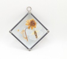 Vintage Beveled Pressed Flower Glass Leaded Lead Small Wall Art Moth Butterfly