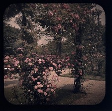 Roses Flowers Garden C1910 Stereo Glass Autochrome Vintage