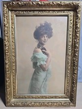 Antique Portrait picture Of A Lady, Framed glass 19x12