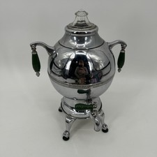 Everbrite Chrome Plated Coffee PERCOLATOR Urn Pot Green Wood Handles UNTESTED