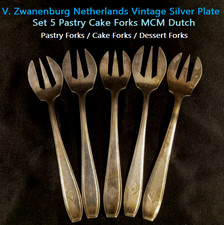V. Zwanenburg Netherlands Vintage Silver Plate Set 5 Pastry Cake Forks MCM Dutch