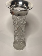 Antique Cut Crystal 9" Vase German 800 Silver Rim GEBRUDER KUHN Incredibly Rare