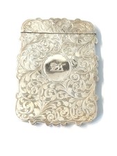 Antique English Sterling Silver Card Case Birmingham c. 1845. Floral Urn & Lion