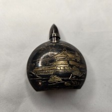 950 FINE SILVER PERFUME BOTTLE OIL FLASK ASHES URN VIAL Etched Black Antique