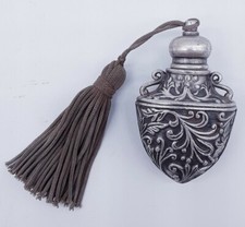 Victorian Art Nouveau pewter Perfume Bottle Vial w/tassel Renaissance Goth Urn