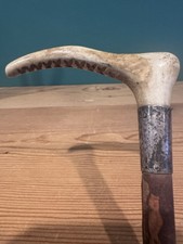 Vintage Antique 19C England Horse Whip Crop AntlerStag Sterling Silver Mount Old
