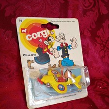 Corgi #79 OLIVE OYL IN YELLOW AIRPLANE Vintage Diecast Toy Mettoy, 1980 NEW