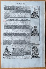 15th Century “Nuremberg Chronicle” Original Religious Leaf Woodcut Gothic Script