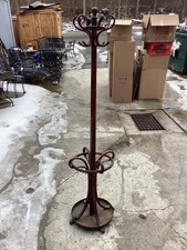 Antique Bentwood Hallway Entryway Coat Tree Metal Plate Base *Read description*