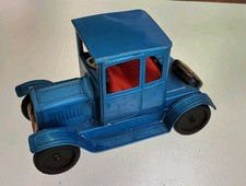 Vintage Lizzy Friction Tin Car Blue Old Time Made In Japan Works Collectible
