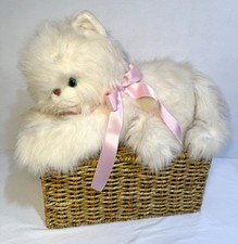 Large Vintage Persian Cat Kitty Kitten Plush Bow Kellytoy White Fur Playful Pets