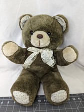 Vintage Brown Bear Plush 17 Inch Flower Feet Ribbon Ears Stuffed Animal Toy