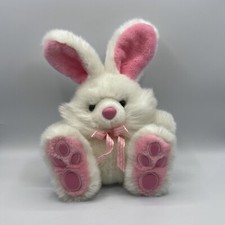Vintage TOY-O-RAMA Fluffy White Bunny Rabbit Pink Ears, Nose, Toes Easter Plush