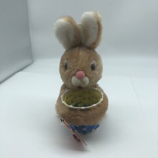 Vintage Easter bunny holding tiny basket Plush toy blemish on face