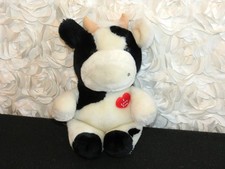Vintage Cow I love You Heart Black White Bull VTG Plush Stuffed Animal Toy 8”
