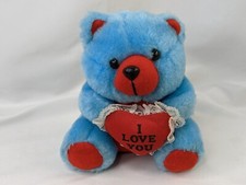 Blue Red Bear Plush I Love You Heart 6 Inch Vintage Stuffed Animal Toy