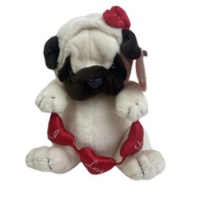 Pug Plush Valentine Vintage 6 Inches With I Love You Hearts