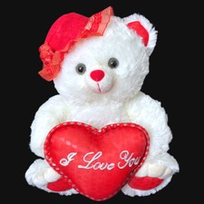 Oshko International White Teddy Bear Plush Red Nose & I Love You Heart 9”