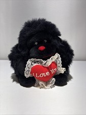 Rare Gorilla Plush Ape "I Love You" Red Heart Pillow Lace Stuffed Black Red Vtg