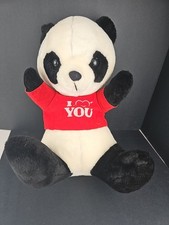 Rare Vintage Liberty Toy Panda Plush Stuffed Animal Red I Love You Shirt 14"