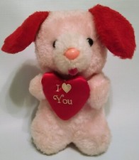Vintage MTY Dog Pink Red Holding I Love You Heart Plush Stuffed Toy 6.5" Small
