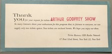 Rare Vintage 1950's Arthur Godfrey Radio Show Ticket Notice