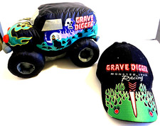 VINTAGE 2000'S GRAVE DIGGER MONSTER TRUCK HAT AND PLUSH TOY COLLECTIBLES NICE