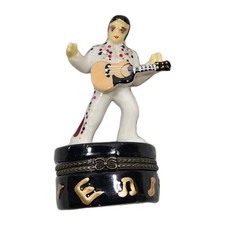 Vintage Elvis Presley Trinket Hinged Box W/ Mini Guitar And Microphone Porcelain