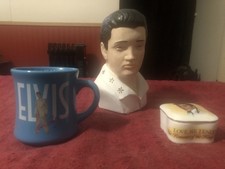 Vintage Plaster Elvis Bust, Music Box, And "The King of Rock N' Roll" Coffee Mug