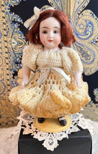 Antique Germany 2 1/2" bisque Kestner doll mignonette hair flowers cabinet shy