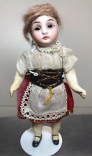 7.5” Antique German Painted Bisque Compo Doll Peasant Girl Blue Glass Eyes #SF