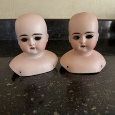 Antique Bisque Doll Shoulder Lot Two Heads 1 Set Eyes 1895–1910 Made in Germany