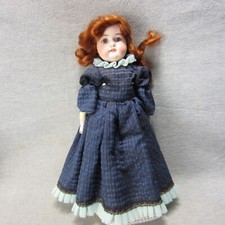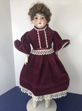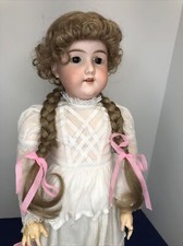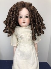 28" Antique Bisque A&M 390 Doll Wavy Hair Brown Wig Blue Eyes