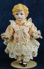 ANTIQUE GERMAN RECKNAGEL BISQUE DOLL 8-1/2", COMPOSITION BODY, 1907 R/A DEP 12/0