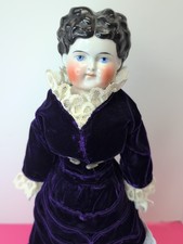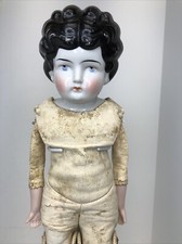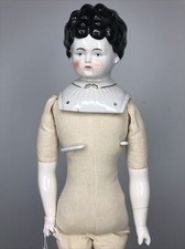 16” Antique German Porcelain China Head Doll High Brow Flat Top Original Body #A