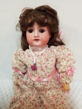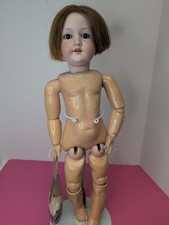 18" A2M Germany antique bisque doll with jointed body and real 14k gold necklace
