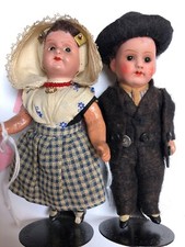 4.5” Antique German A&M 16/0 & Painted Bisque German Dressed Doll Couple SF2