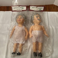 Lot Vintage 1992 Fibre Craft Music Box 13” Grandma #3207 & 14” Grandpa #3208 NOS