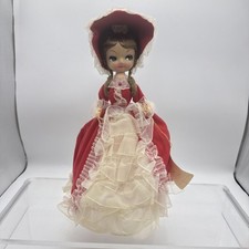 Vintage 70s Bradley Big Eyed Doll Music Box Southern Belle Ruffles Red Gown Hat
