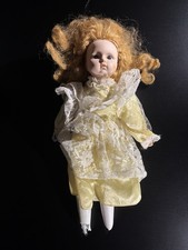 Vintage Porcelain Doll in Yellow Dress, Broken Legs, Music Box Haunting Music