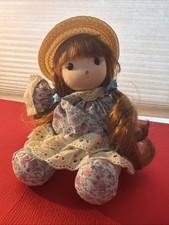 Vintage Eden MUSICAL Music Box Cloth Baby Rag Doll Plush 9" Gingham Dress Bonnet