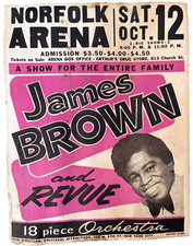 1968 JAMES BROWN AND REVUE NORFOLK ARENA R&B VINTAGE CONCERT POSTER, NORFOLK, VA