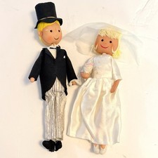 Vintage Bride & Groom Stockinette Dolls 14" Mid Century 1960s Wire Pose 1963