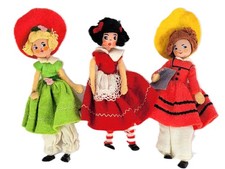 Three Vintage BAPS Doll Lot Felt German Mid Century Edith Von Arps