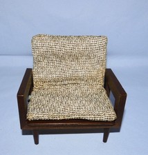Mattel Mid Century Modern Wooden Doll Furniture Arm Chair & Cushions Japan 1958