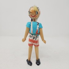 Vintage 50's Polish Wooden Peg Doll 7" Moveable Arms Mid Century