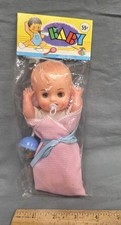 Vintage Baby Doll CELLULOID Toy HONG KONG Rattle Pacifier NOS Sealed Baggy 7"