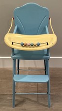 Amsco Doll High Chair Blue Metal & Yellow Tray 30” Tall 1950s Vintage Toy