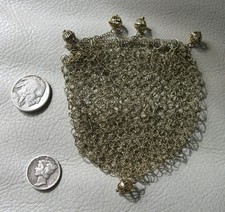 Antique Gold Wash 5 Ball Tassel Chatelaine Drawstring Mesh Bru Doll / Coin Purse