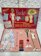 Vintage 1950’s DeJournette Becky Blonde Paper Doll With Washable Clothes Toy Kit
